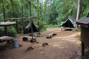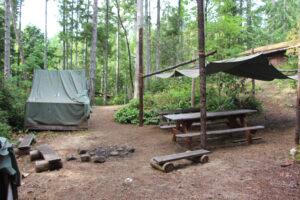 The centerpiece of the Rangers campsite is the Rangers Cabin, which was built by scouts in 1937, making this one of our most historic campsites. Though it is the furthest away from the dining hall, it is the only campsite where scouts can stay in a fully enclosed cabin – where scouts have been staying since the early days of camp. Rangers “A” includes the cabin, cook shelter, and a leader’s shelter that sleeps 6. Rangers “B” is a tent site that includes a 4-person leader’s shelter.